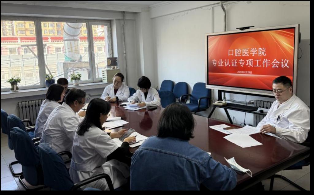 2025年2月28日下午,口腔医学院在副四层会议室召开口腔专业认证工作启动以来的首次推进会。会议由潘爽院长会议,院领导班子成员及各工作组负责人参加。