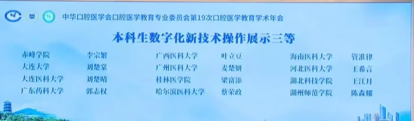 在本科生数字化新技术操作展示环节中,我院本科生蔡荣政同学凭借卓越的操作技能,荣获三等奖,体现了我院在口腔医学数字化教育领域的领先优势。
