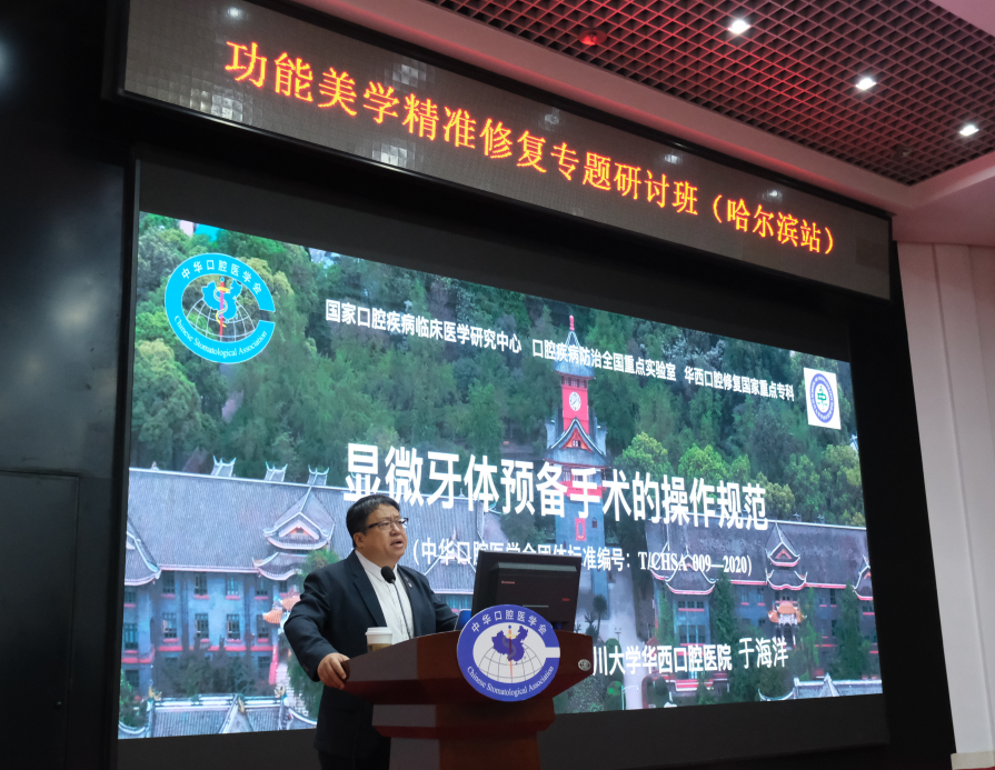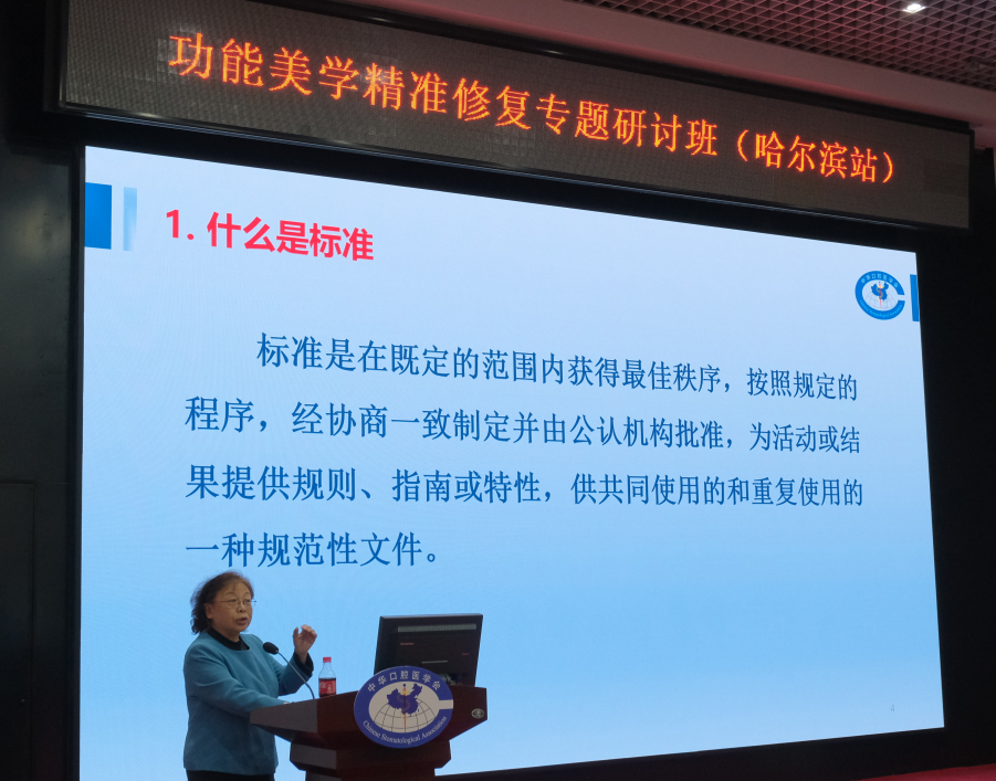 会议开幕式由黑龙江省口腔修复专委会主任委员谢伟丽教授主持,开幕式上, 哈尔滨医科大学口腔医学院院长潘爽教授作为东道主,向与会专家和学员表示了诚挚的欢迎;黑龙江省口腔医学会会长张斌教授肯定了本次会议对推动龙江口腔修复学科发展的重要意义;中华口腔医学会修复专委会主任委员于海洋教授则从学科引领者的角度,展望了功能精准美学修复的未来。中华口腔医学会副秘书长刘宏伟教授着重强调了团体标准在统一诊疗规范、保障医疗安全与质量中的“金标准”地位。