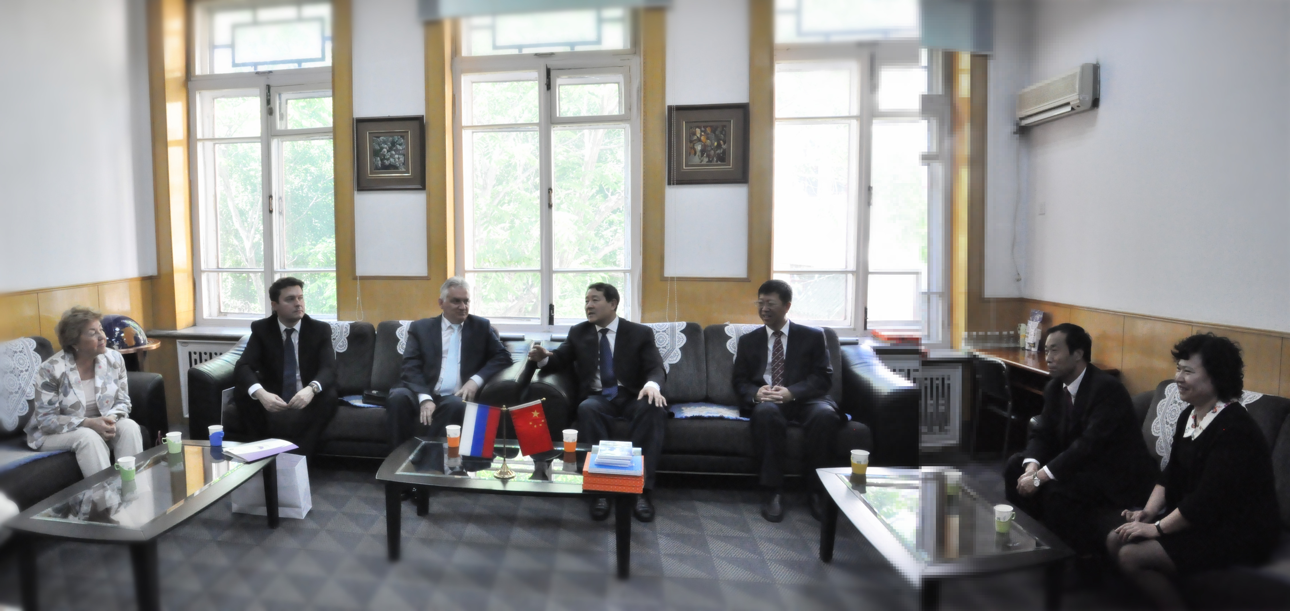 杨宝峰校长首先介绍了参加会见的我方领导并向外宾表示欢迎,同时高度肯定了两校在中俄医学联盟中所建立的深厚友谊。维克多.尼古拉耶维奇.察廖夫教授也逐一介绍了代表团成员,并表示此行将进一步加深与哈尔滨医科大学的合作,并在与大学的合作框架下同口腔医学院开展教学、科研、医疗全方面的交流,共同申报项目。